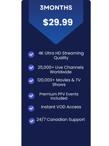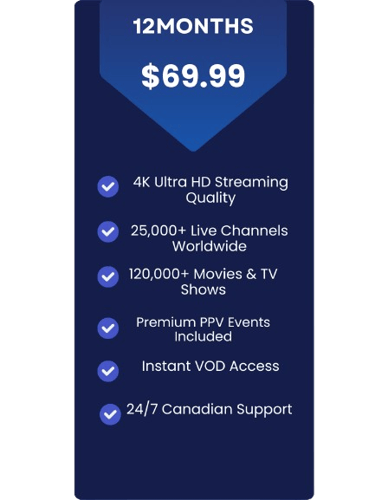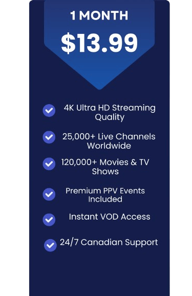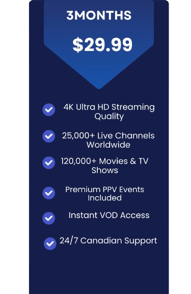 Affordable pricing plans with no hidden fees or long-term commitments. Choose from a variety of options to access our extensive channel lineup and high-quality streaming capabilities. Sign up today and start enjoying the ultimate IPTV experience at unbeatable value.